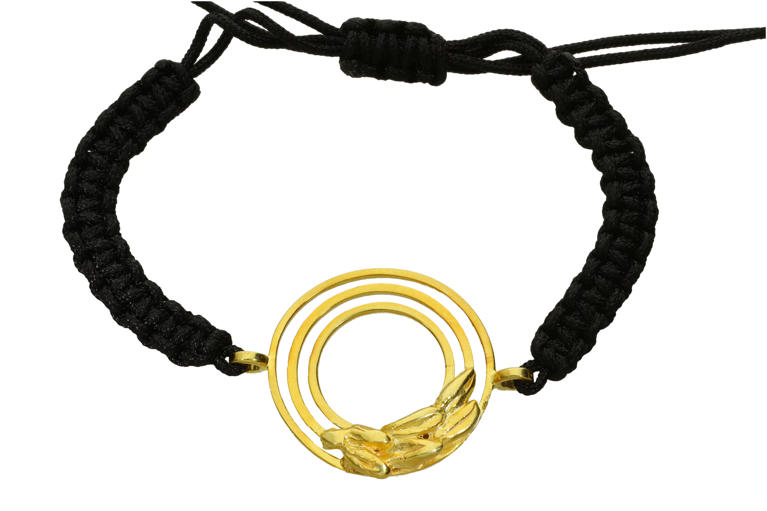 Βραχιόλι σε ασήμι 925° επιχρυσωμένο Γούρι 2026 "Σιτώ" ομόκεντροι κύκλοι με στάχυ δεμένο με κορδόνι μακραμέ