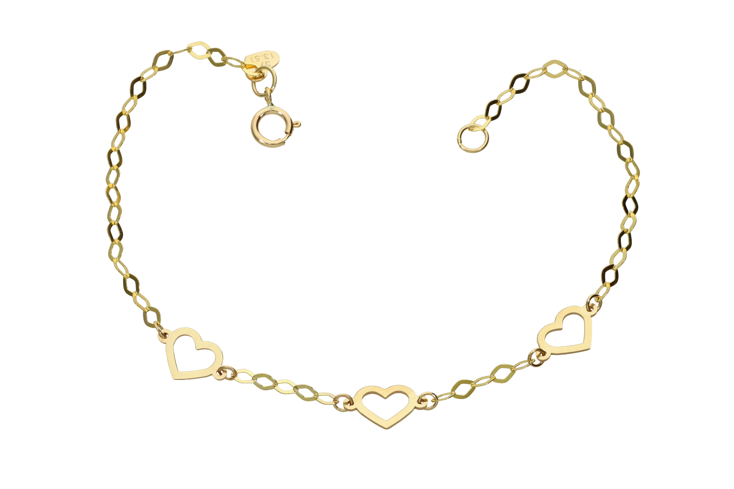 Βραχιόλι σε χρυσό 9Κ με τρεις καρδούλες