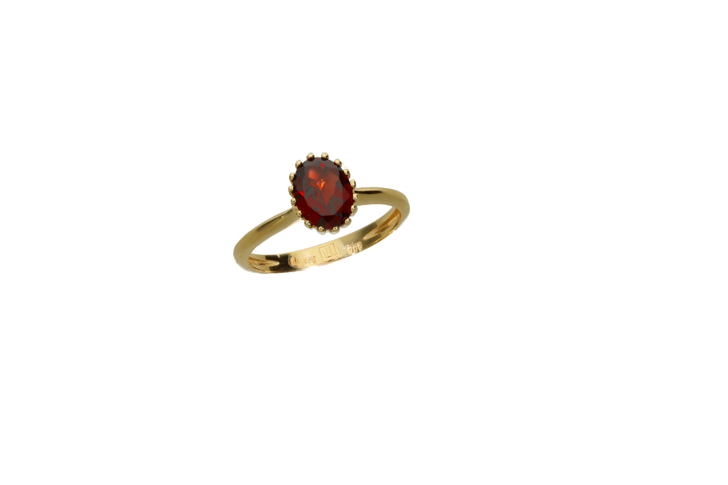 Δαχτυλίδι σε χρυσό 18Κ μονόπετρο οβάλ με γρανάδα δεμένη με πολλά δοντάκια