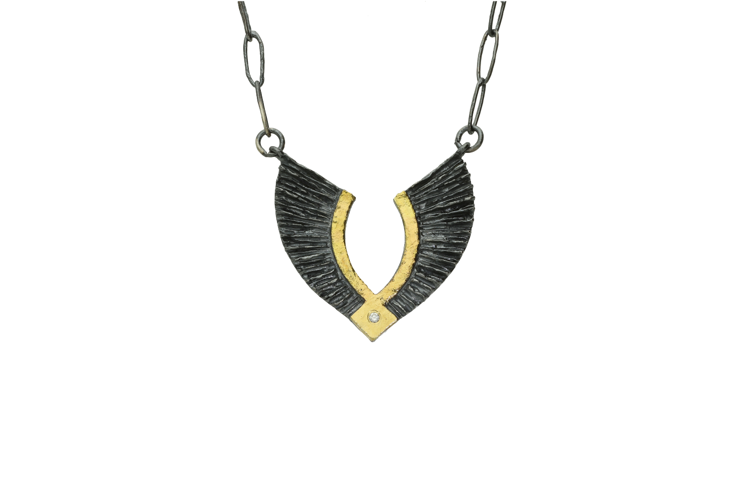 18K silver and gold feather necklace with diamond