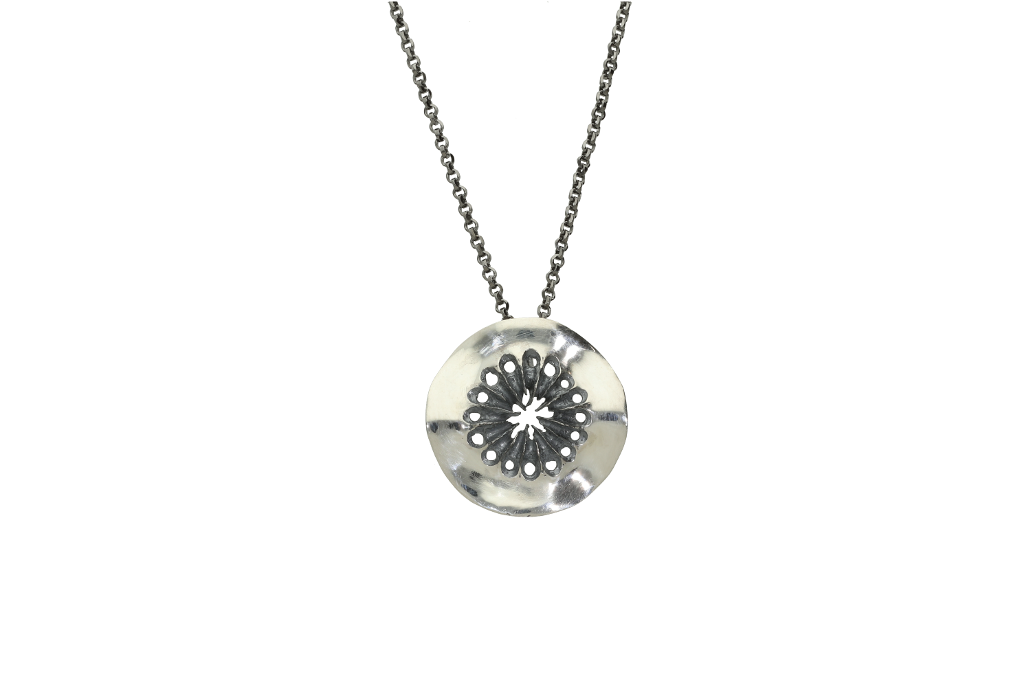 Necklace in 925° blackened silver with a round motif with horizontal lines