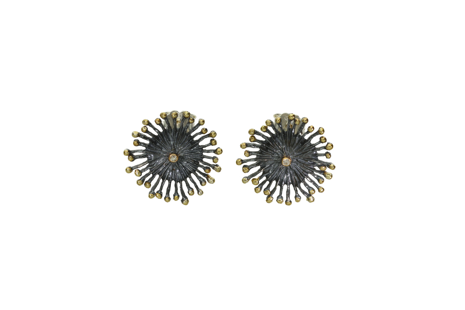 Earrings in blackened silver and gold k18 radial with diamond