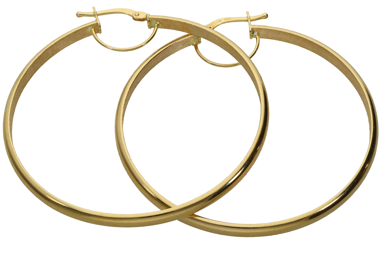 Earrings in 14K gold, large hoops, shiny bulls and matte middles.