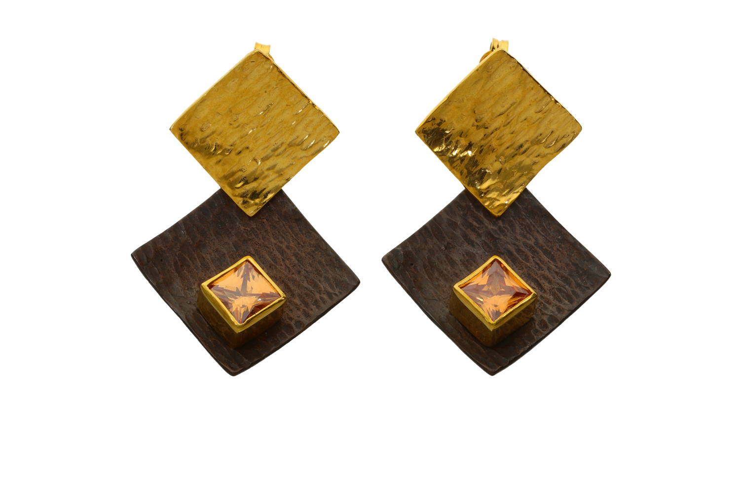 Κολιέ σε ασήμι 925° μαυρισμένο τετράγωνο μοτιφ που φέρει το ζιργκόν και επιχρυσωμένο τετράγωνο μοτίφ