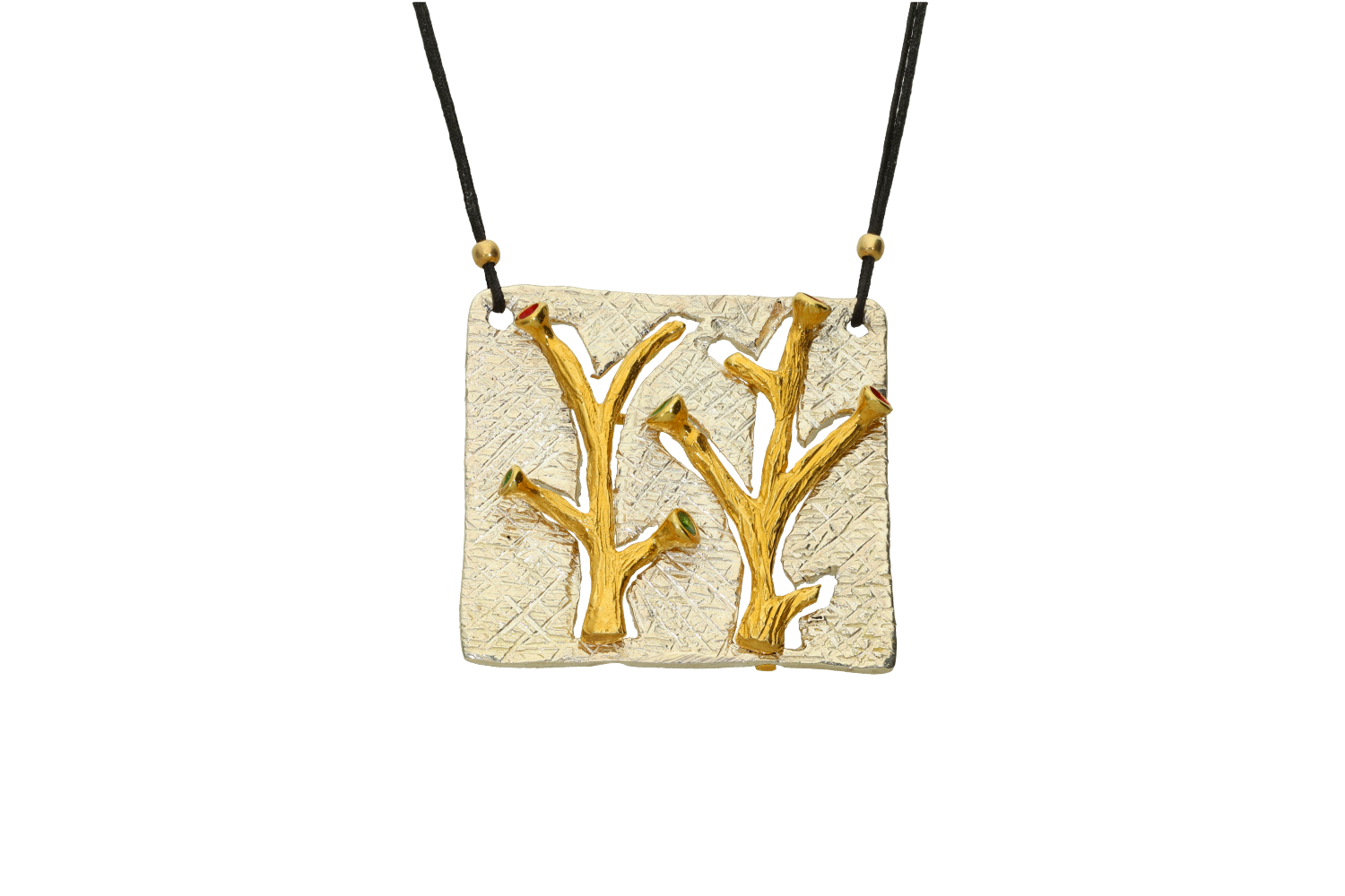 Κολιέ σε δίχρωμο ασήμι 925° ασημένιο τετράγωνο με επιχρυσωμένα μοτίφ σαν κλαδιά