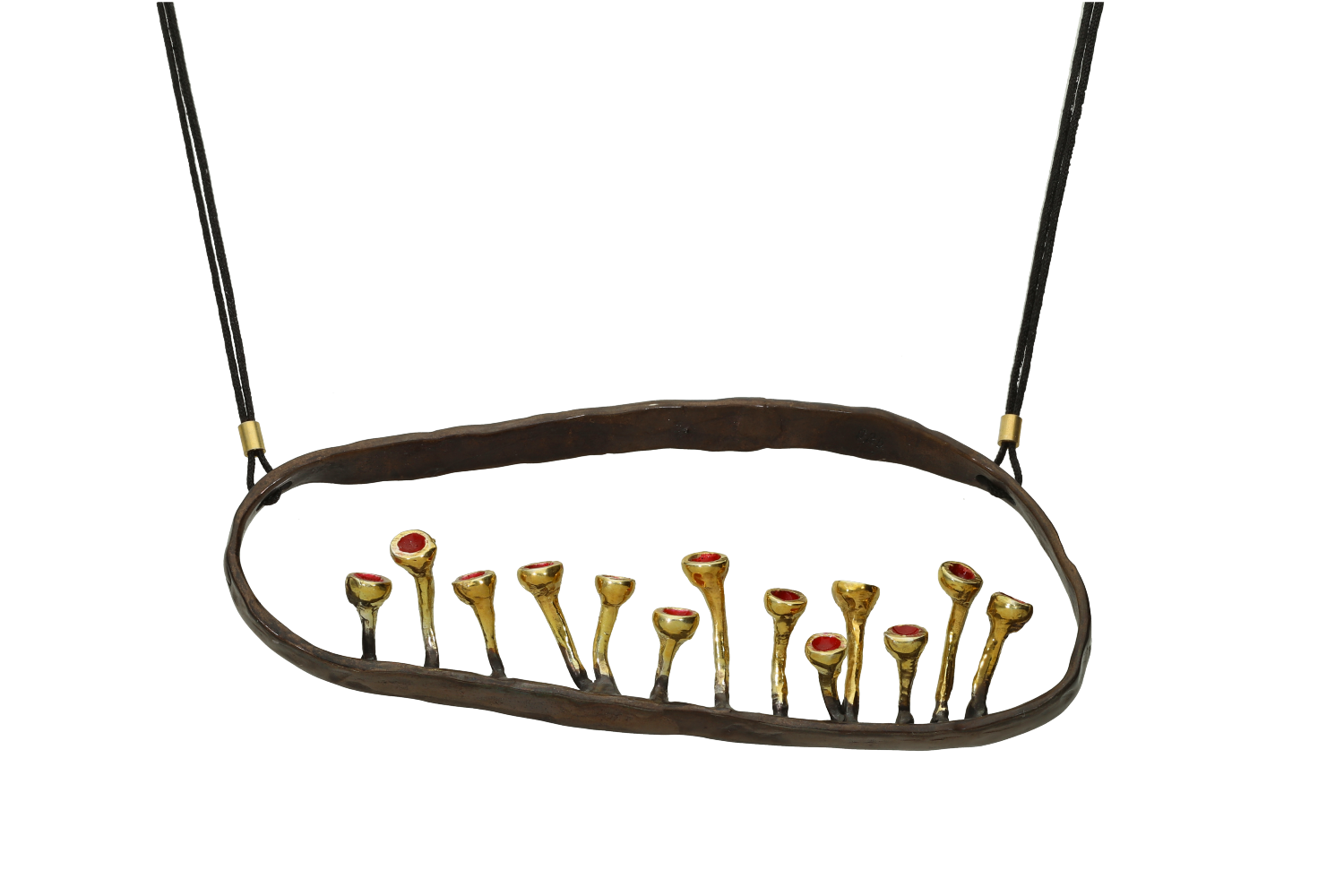 Κολιέ σε δίχρωμο ασήμι 925° μαυρισμένο έλασμα με επιχρυσωμένα μοτίφ