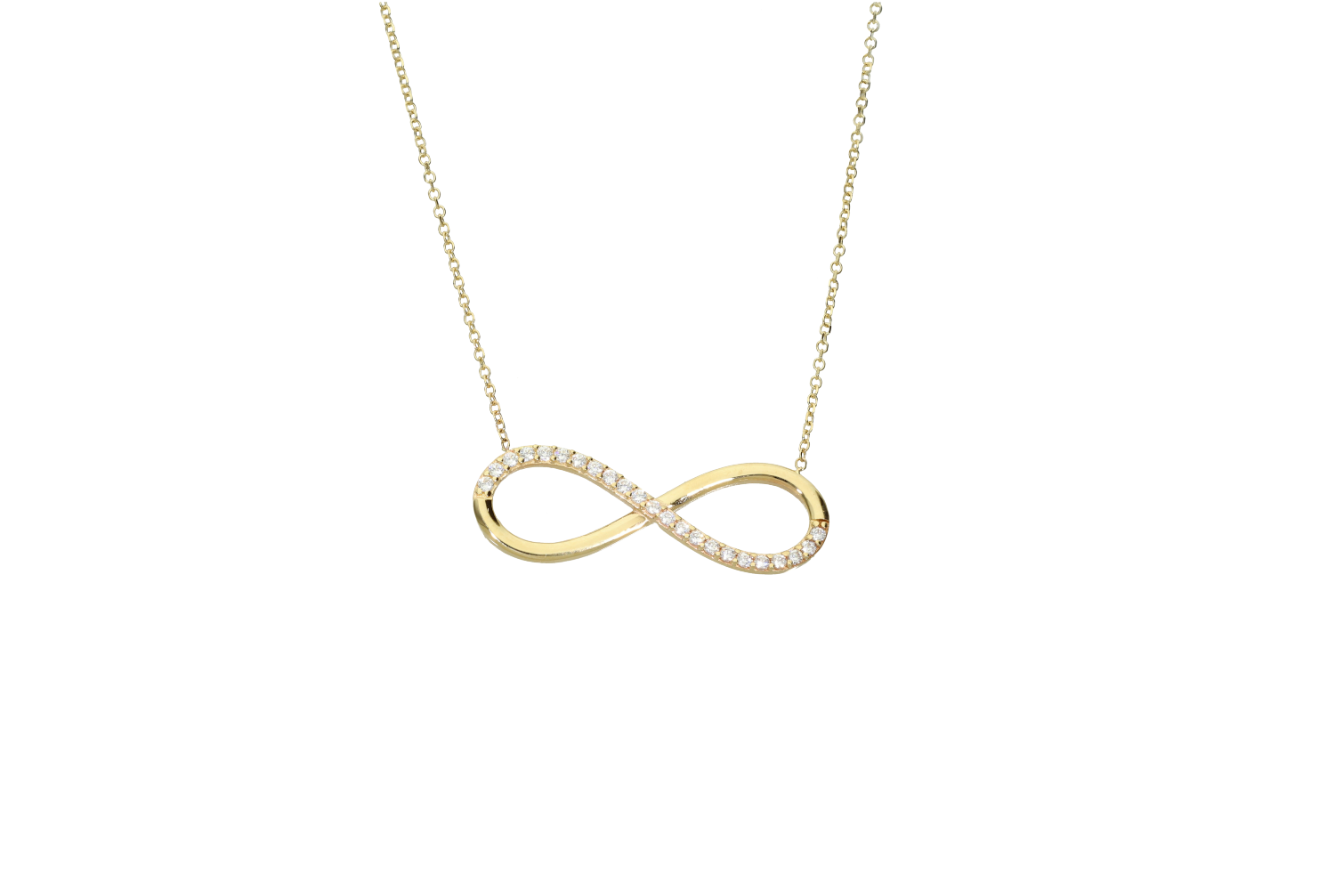 Κολιέ σε χρυσό 9Κ το σήμα του άπειρου με ζιργκόν