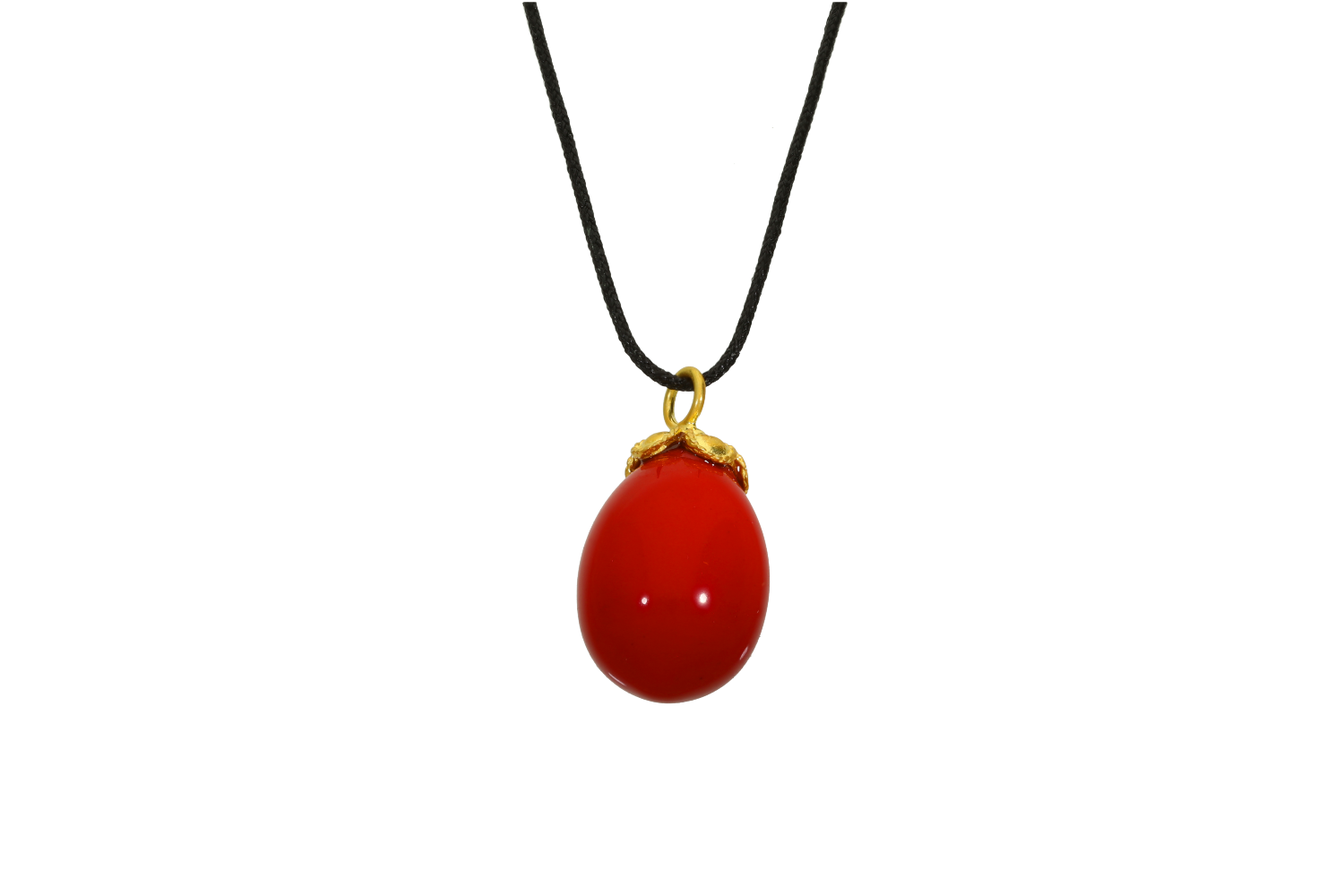 Μενταγιόν Αυγό από κόκκινη πέτρα με δέσιμο "ρόδακα" από ασήμι 925° επιχρυσωμένο