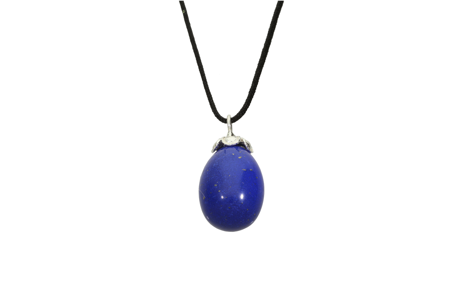 Μενταγιόν Αυγό από λάπις πέτρα με δέσιμο "ρόδακα" από ασήμι 925°