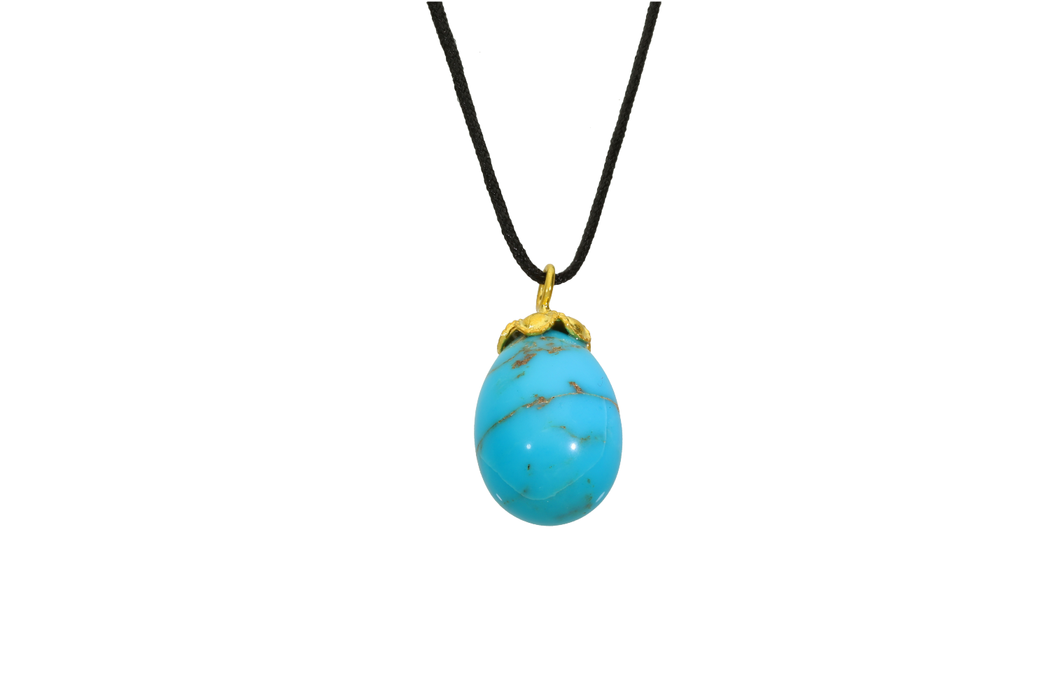 Μενταγιόν Αυγό από τυρκουάζ πέτρα matrix με δέσιμο "ρόδακα" από ασήμι 925° επιχρυσωμένο