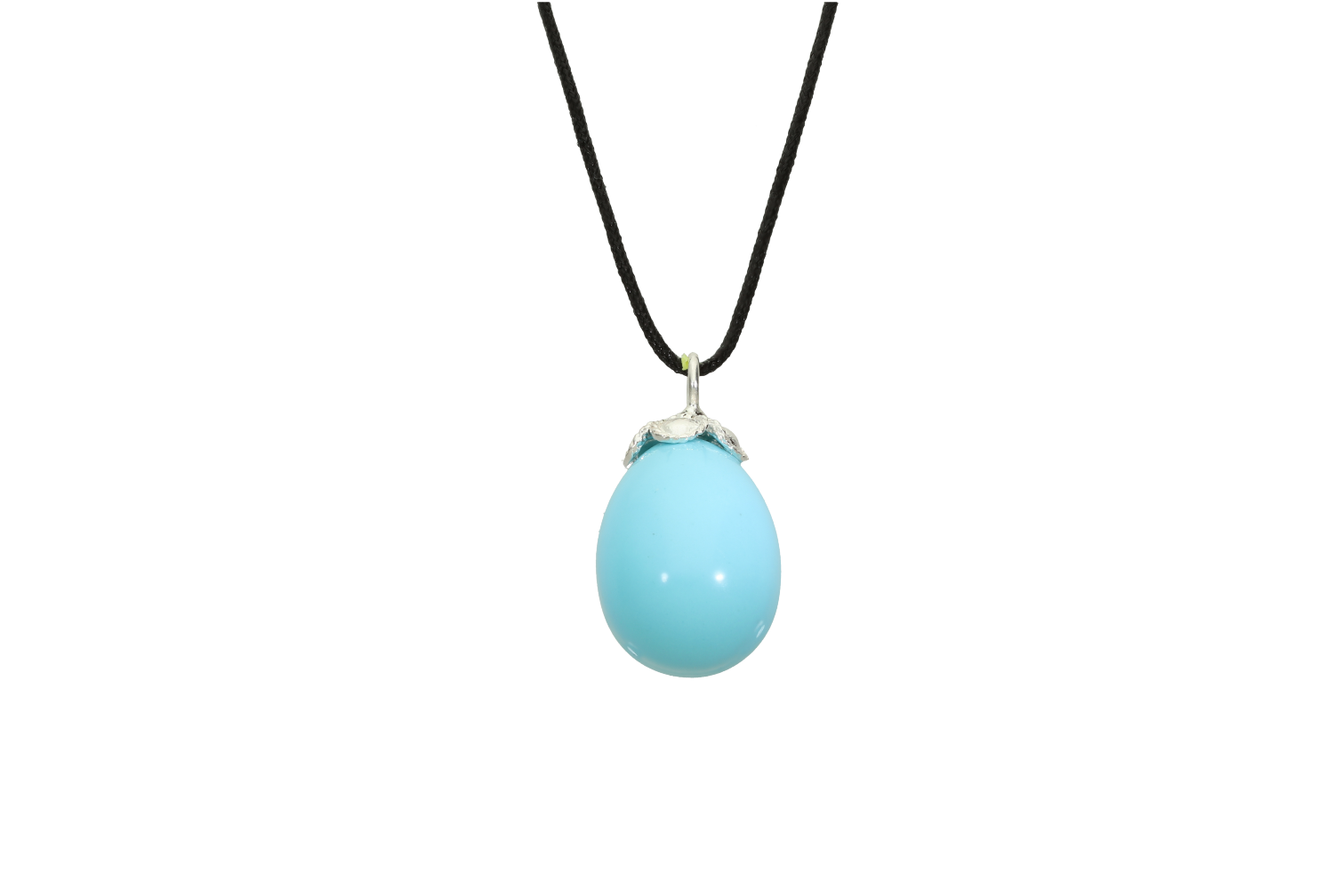 Μενταγιόν Αυγό από τυρκουάζ πέτρα με δέσιμο "ρόδακα" από ασήμι 925°