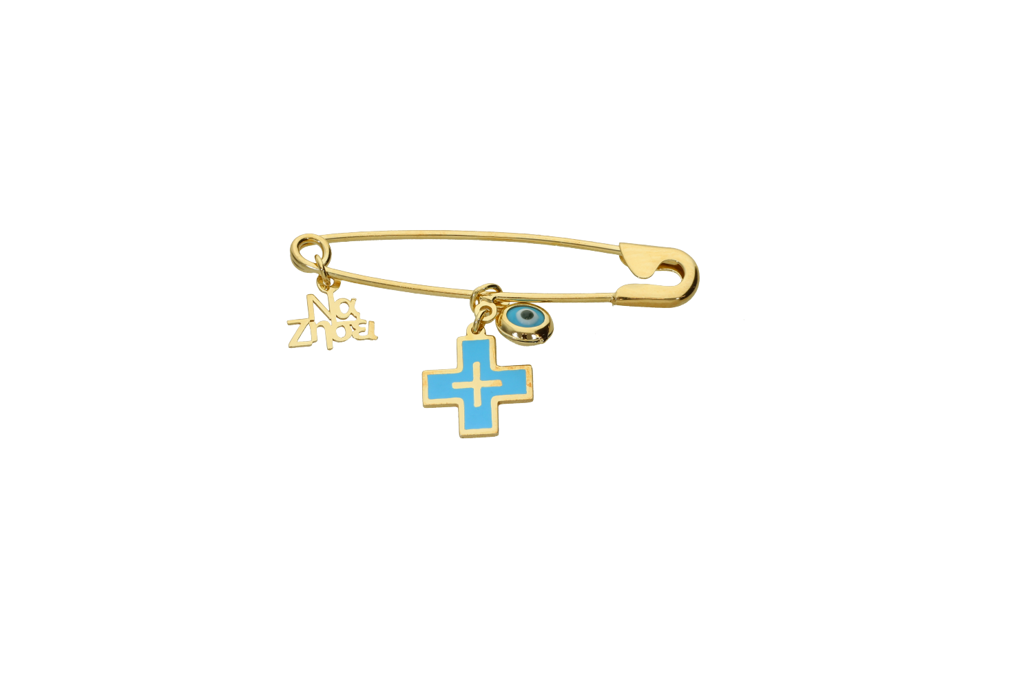 Παραμάνα σε επιχρυσωμένο ασήμι 925° με σταυρουδάκι με σμάλτο ματάκι και "Να Ζήσει"