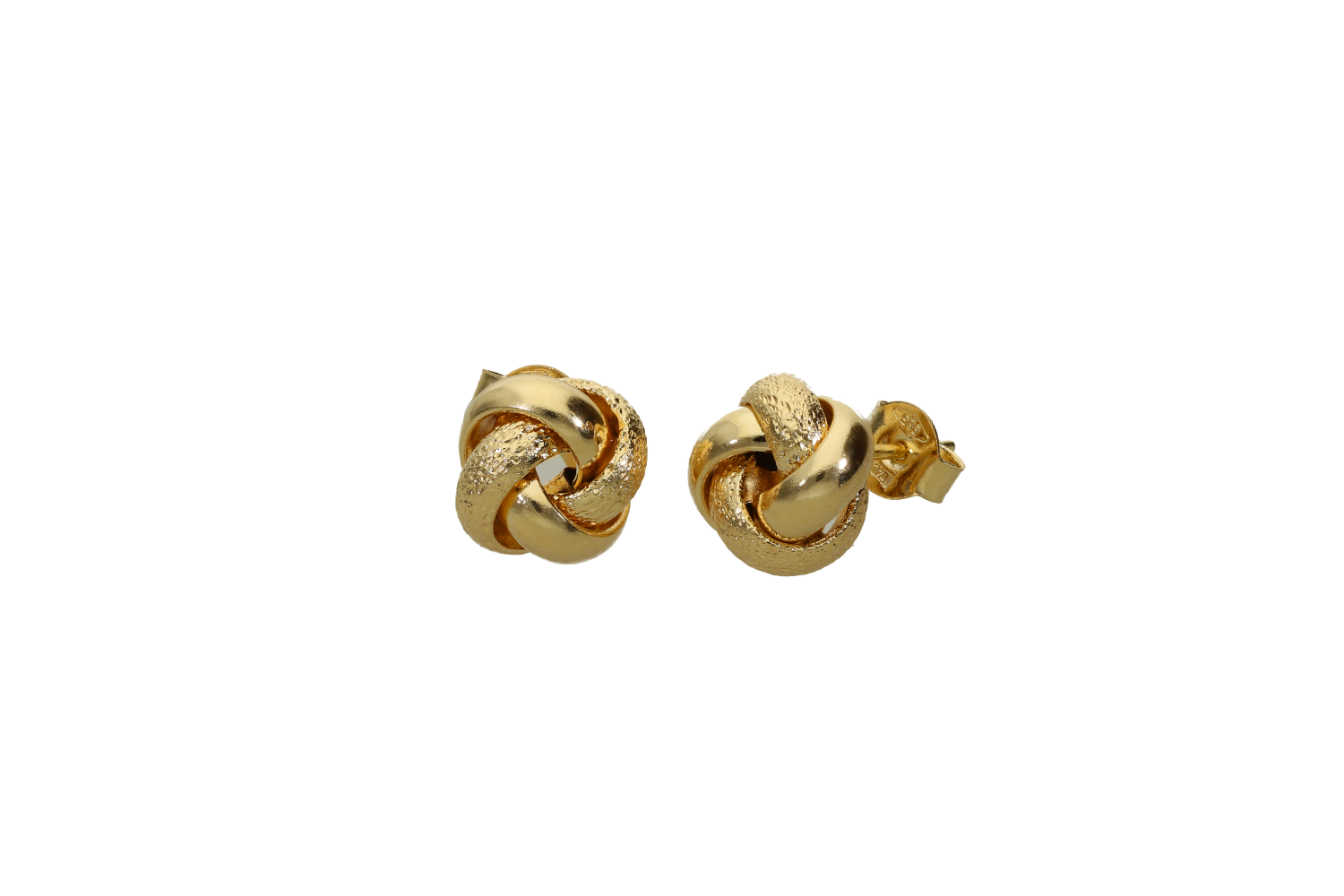 Σκουλαρίκια σε χρυσό 14Κ με έναν κόμπο γυαλιστερό και ζαγρέ