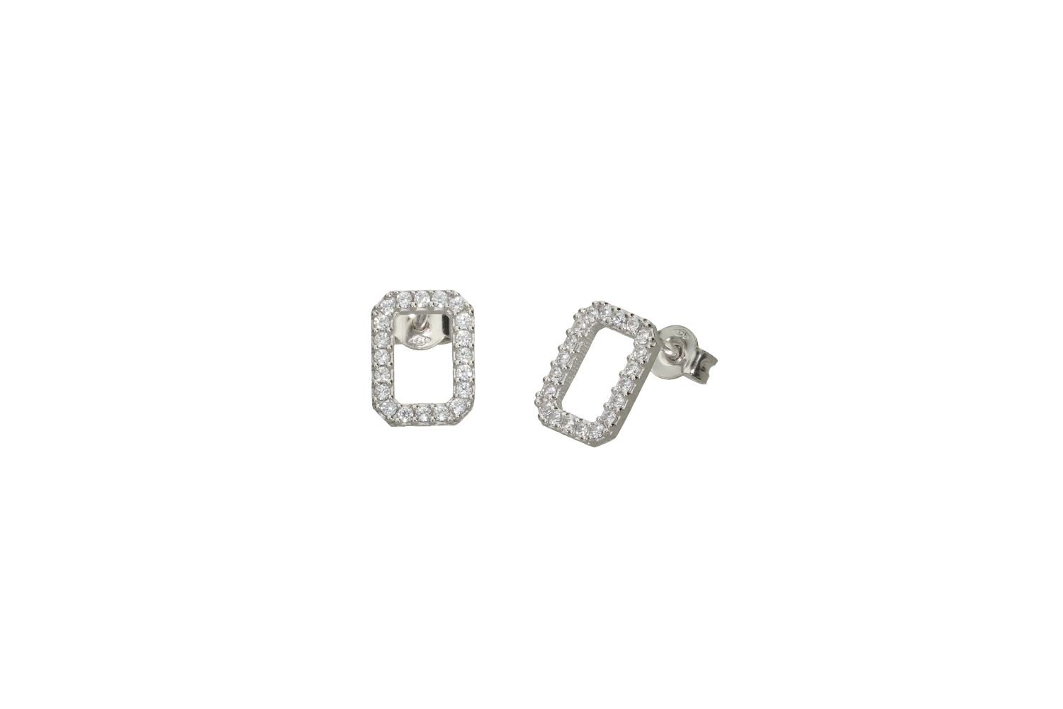 Σκουλαρίκια σε λευκόχρυσο 9Κ ορθογώνιο μοτίφ με ζιργκόν