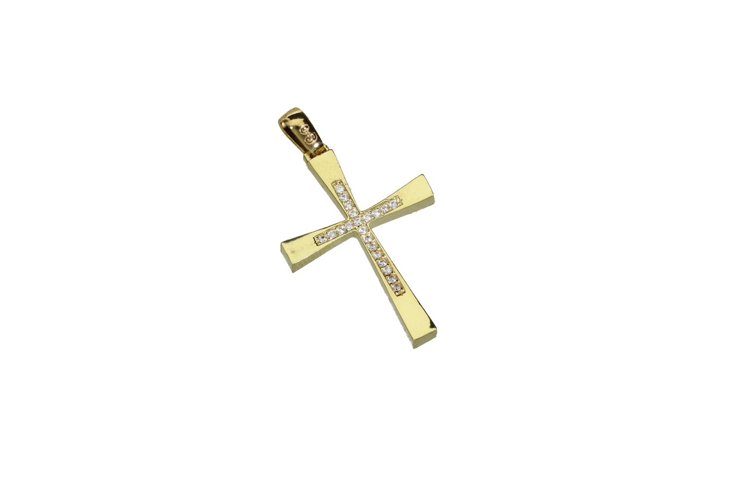 Σταυρός Βάπτισης για κορίτσι σε χρυσό 9Κ φωσκοτές άκρες και ζιργκόν στο κέντρο