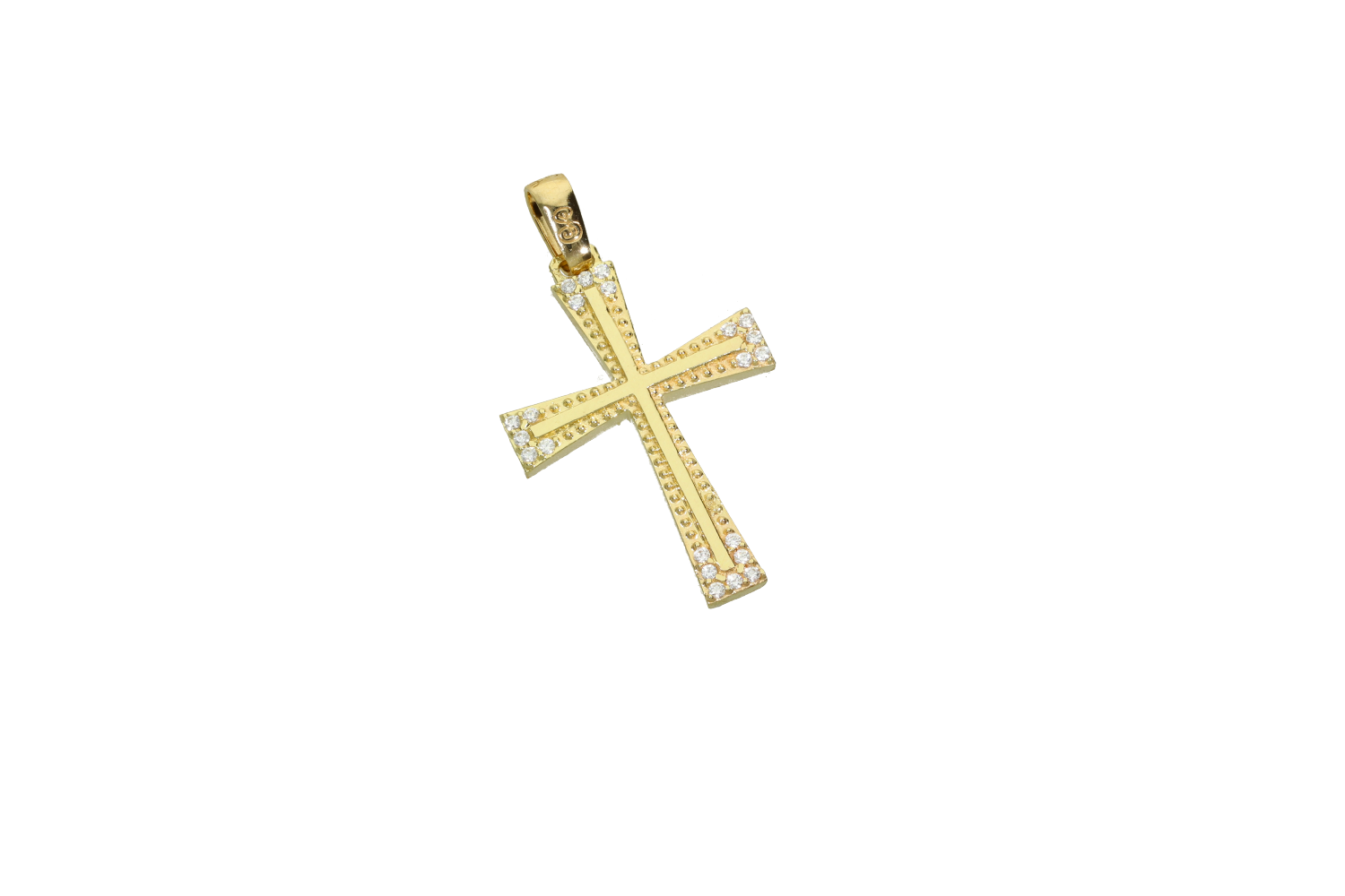 Σταυρός Βάπτισης για κορίτσι σε χρυσό 9Κ με ζιργκόν στη περίμετρο