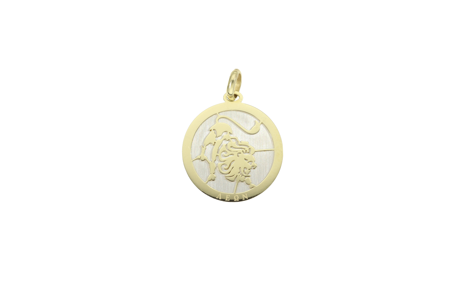 Ζώδιο Λέων σε δίχρωμο χρυσό 14Κ με βάση από λευκόχρυσο και σκαλιστό το ζώδιο σε χρυσό