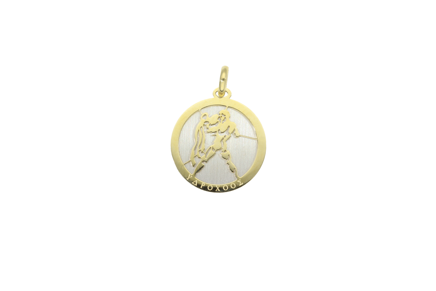 Ζώδιο Υδροχόος σε δίχρωμο χρυσό 14Κ με βάση από λευκόχρυσο και σκαλιστό το ζώδιο σε χρυσό